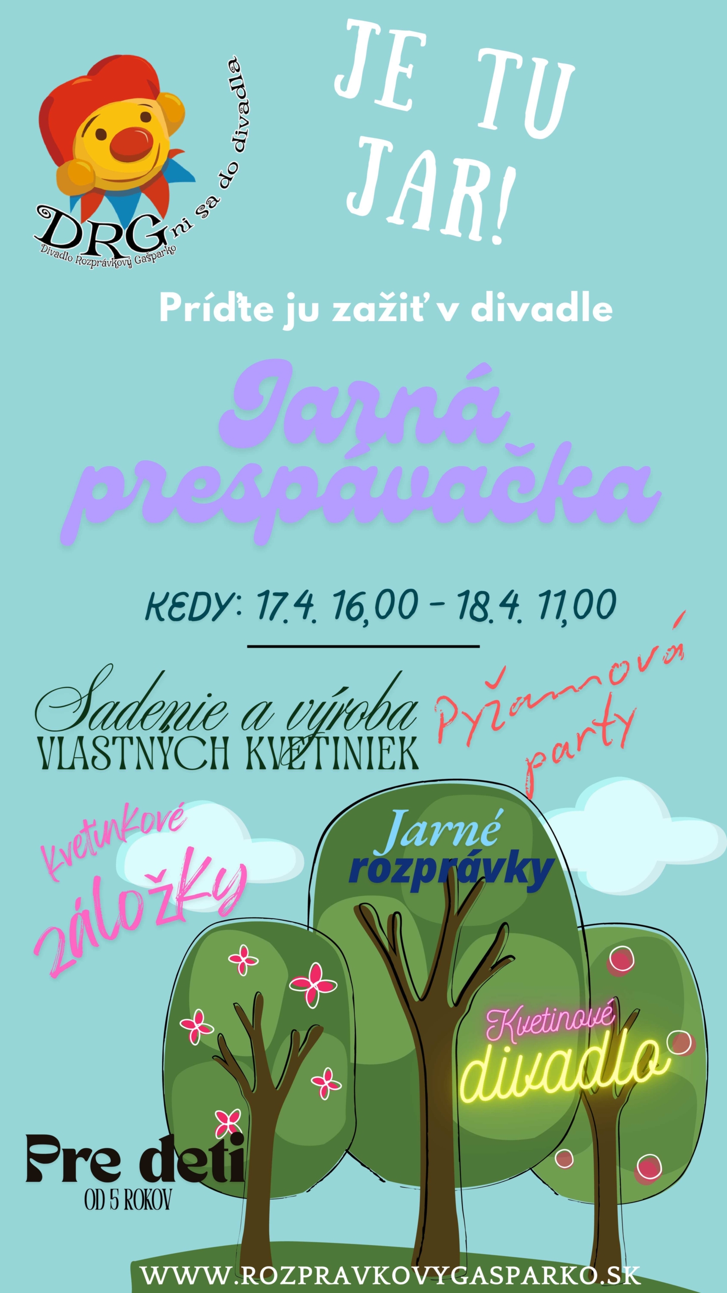 Rozprávkové snívanie s jarnou tématikou pre kreatívne deti od 5 rokov, ktoré majú radi kvety, divadlo, pyžamovú párty a zvládnu spať bez rodičov.